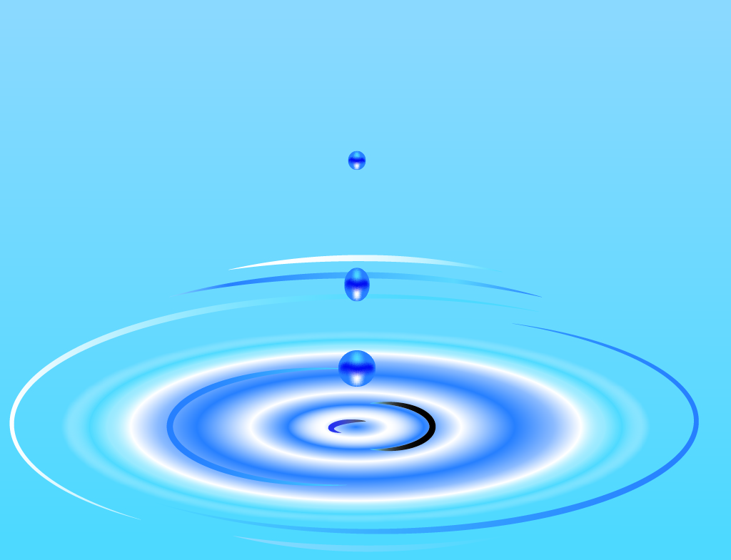This one combined many different tools, like the previous posting, to create a basic shape of a water ripple. It was more complex (for me at least) because it added perspective (creating an oblong ellipse to simulate a horizontal circular surface) and added the use of a gradient mesh tool, which I still have yet to figure out… But it worked very well for this tutorial. It also displayed how to effectively use color, using black, white, and various shades of blue to give depth to the water. Everyone’s water drop+ripple will be different and here’s the look of mine: