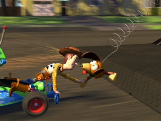 Do you remember the end of Toy Story? Woody and Buzz hop on R.C. and ride to the moving truck. They make it to the truck, and Slinky Dog hops down and grabs Woody. Slinky Dog stretches as far as he can, moving from one side of the street to the other, until he can’t hold on any longer.