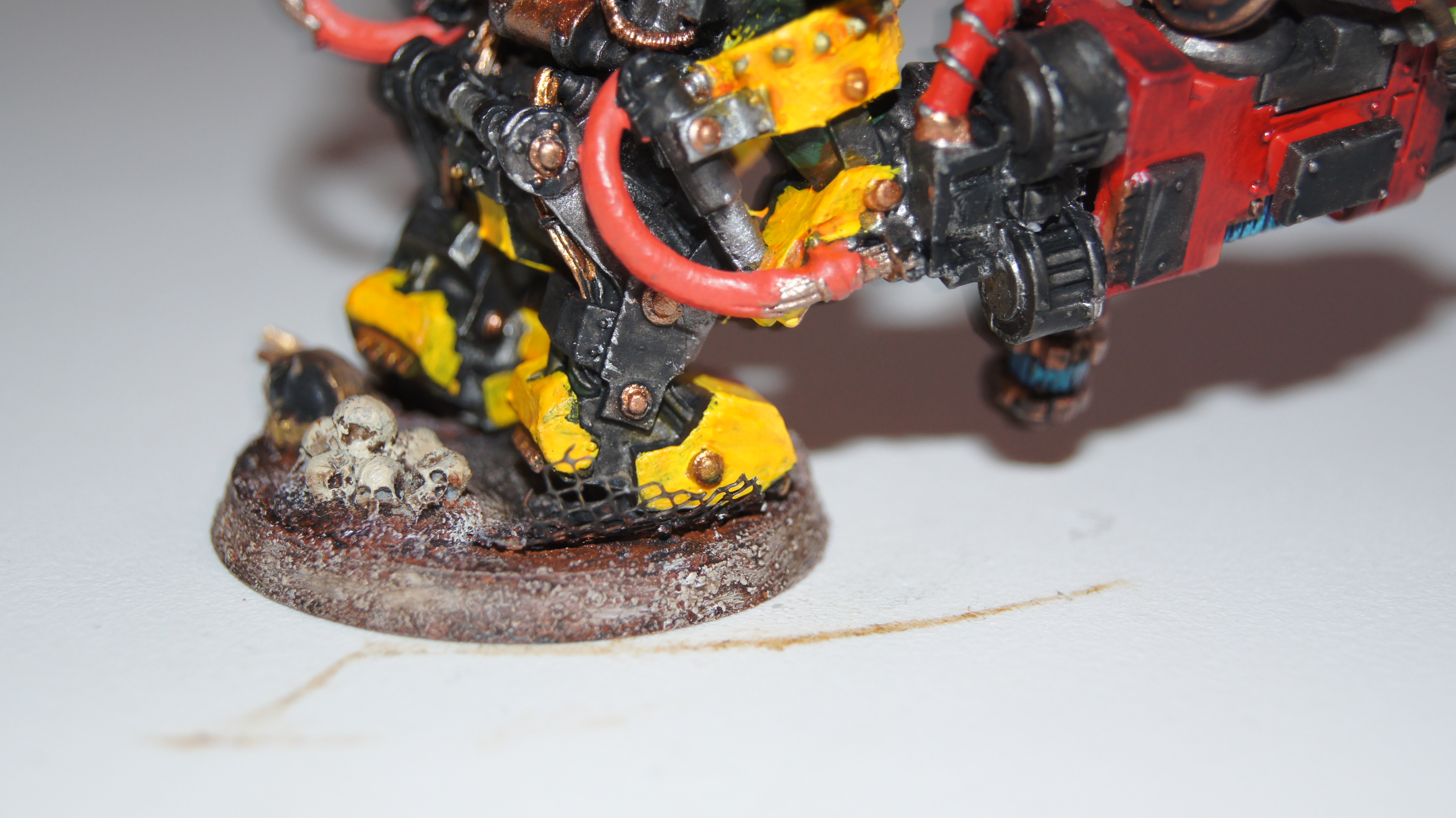 Basing is something that I’ve heard a lot of modelers complain about but it’s one of my favorite parts of finishing a model. I originally wanted to have him on a telly-porta but I couldn’t think of a good way to make that work on a terminator-size base. So I went with a scene from The Purging of Kadillus that is by far one of my favorites in the Black Library books I’ve read (along with Primarch Corax’s charge into the Iron Warriors in Raven’s Flight, also by Thorpe). If you haven’t read the book SPOILER ALERT!
