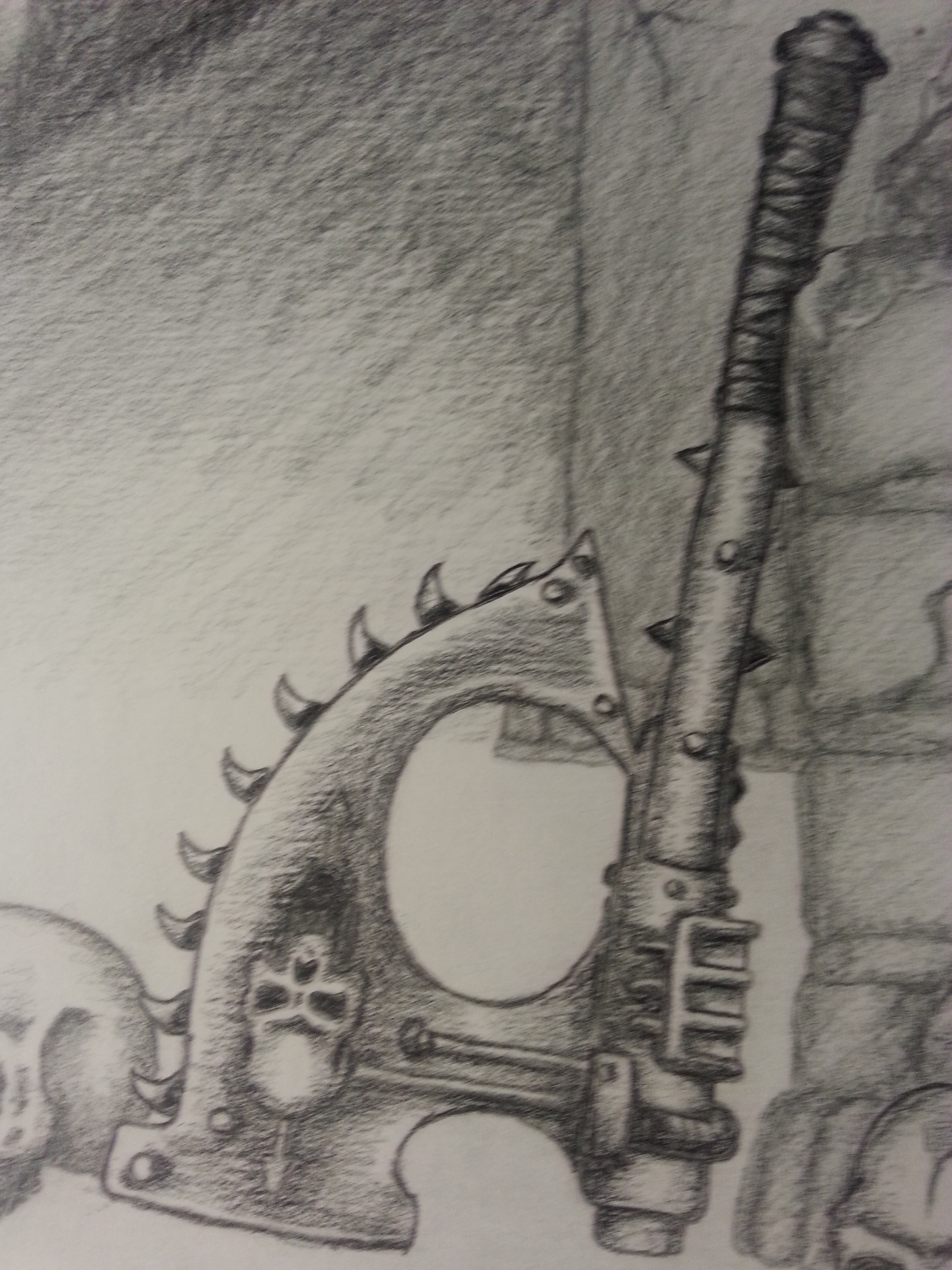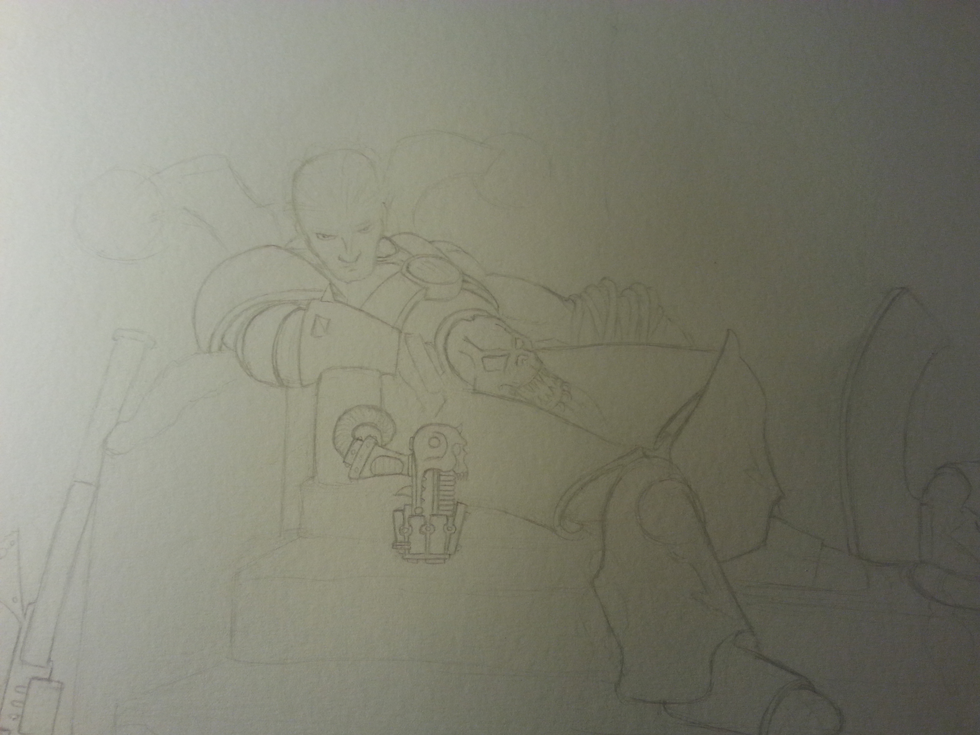 I added some extra battle damage to Kharn’s helmet, just because it was interesting to draw.