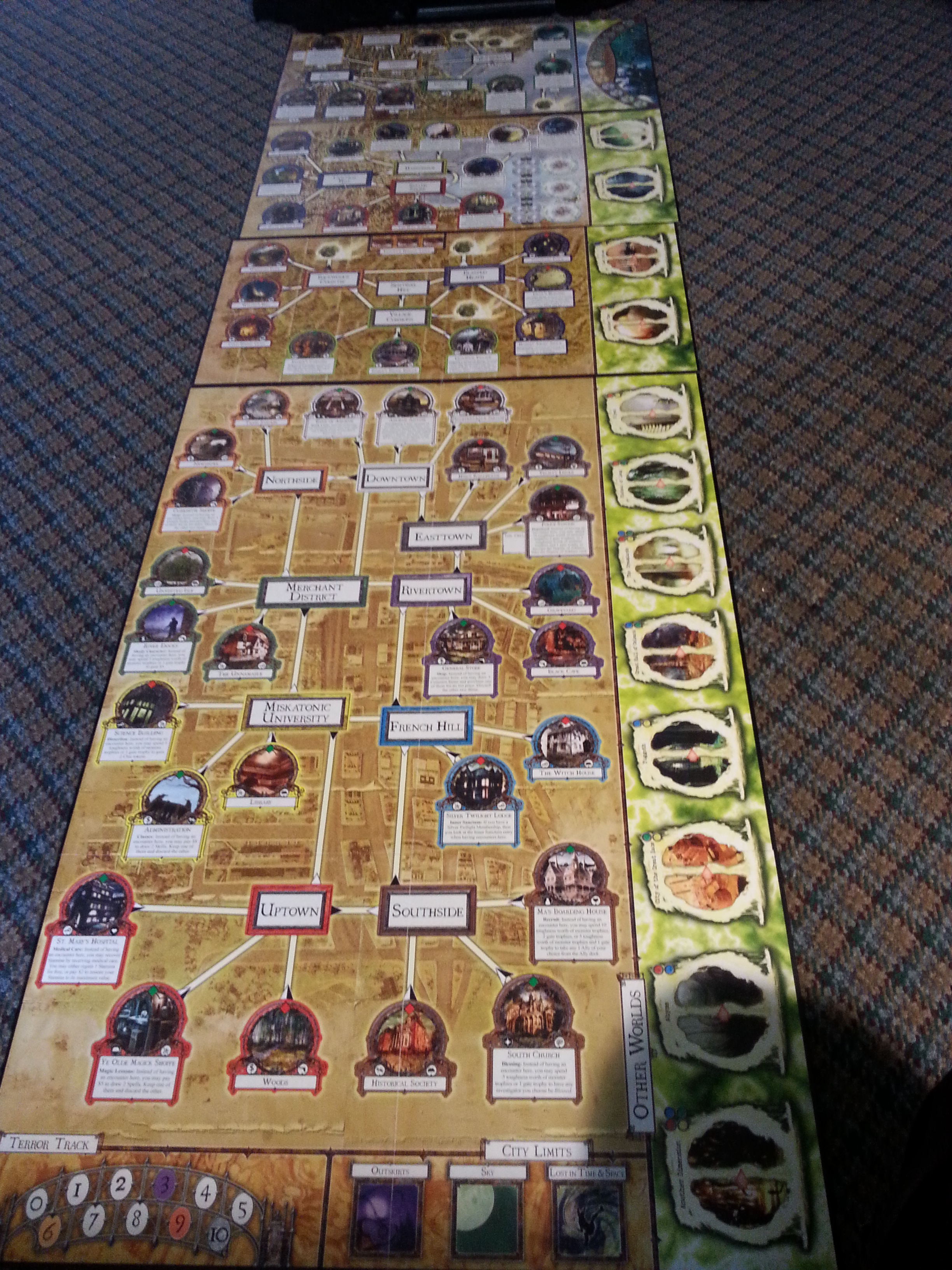 Arkham Horror is one of those games that popped up frequently enough in my various “you might also like” lists and got such stellar reviews I had to try it. It comes with two main warnings: It is very rules heavy and punishingly difficult.