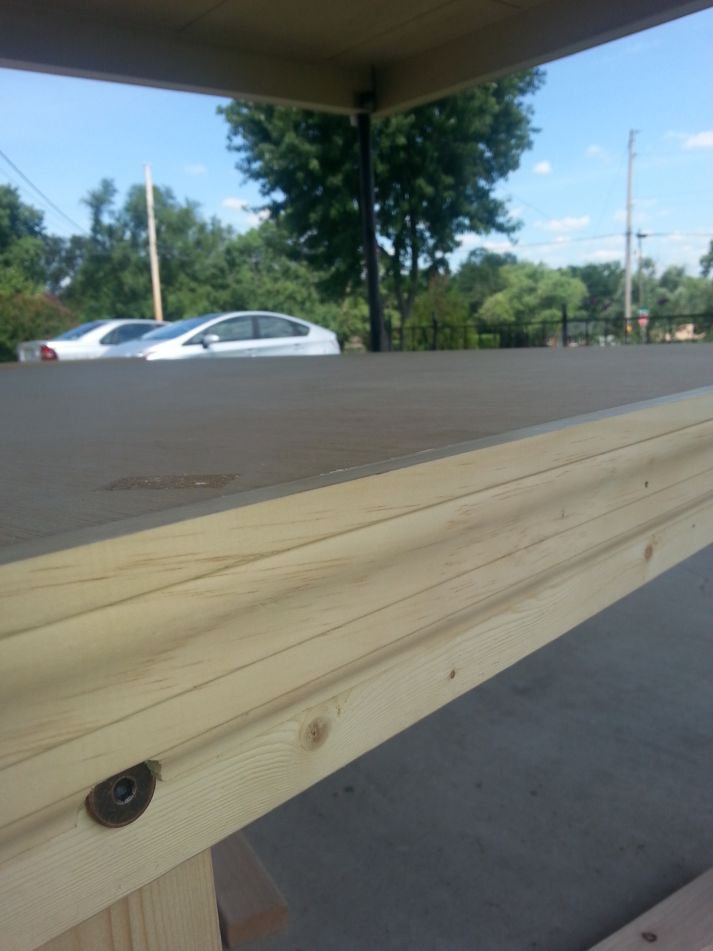 The moulding on the top is actually crown or window moulding. It gives the table an attractive finished edge and provides a natural lip to prevent cards, board, or game pieces from sliding off and even a place to firmly hold a Realm of Battle should I ever buy one.