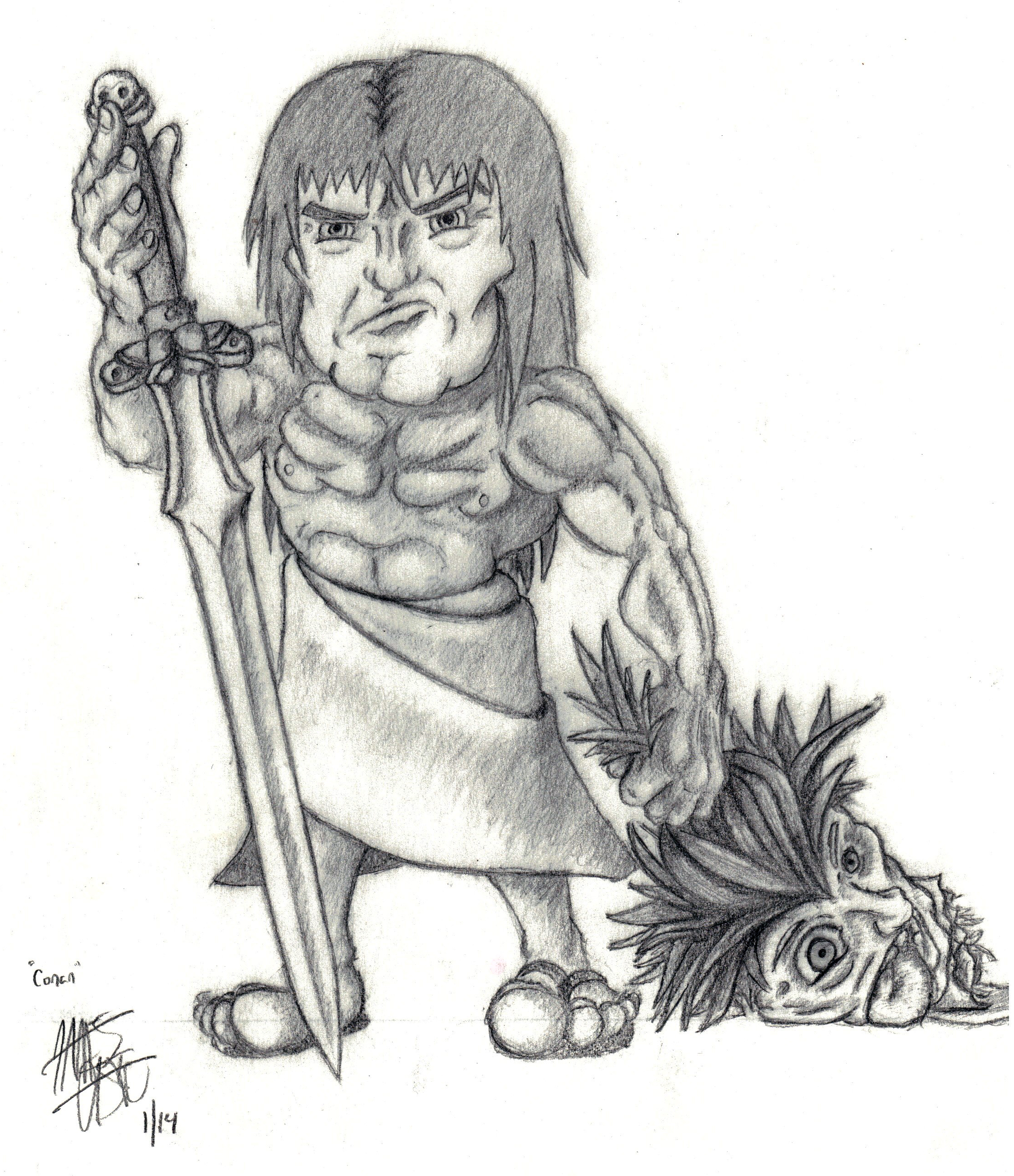 Conan’s original solution is to rely on the strength of steel. He blunders from place to place, hacking and slashing, until he comes face-to-face with Doom, whose legion of followers catches him easily and Thulsa Doom provides him another answer: flesh is stronger. Steel is fine, but with his horde of fervent acolytes succumbing to his false prophet-eering, some willing to turn on and murder their own parents, Doom can overcome steel. Was that the answer then? If so Conan and the world were doomed. But that wasn’t the answer either. During the last battle with Doom’s lieutenants Valeria keeps her promise, that not even death could stop her from fighting by his side, and aids Conan when he most needs it. Then, renewed with strength, Conan rises to his feet, shatters his opponent’s sword, his father’s sword, and destroys the High Priest of Set, a man bigger, stronger, filled with faith in a false prophet, and with steel forged by the very man who provided Conan the riddle. Then looking at the shattered sword, he crosses his weapons in his battle-pit salute and bows his head to the Valeria’s funerary altar. This battle was for her, and she gave him the answer at last: steel is weak, flesh is weak, but the strength of true belief and true purpose can overcome greater steel, greater strength, and any false beliefs no matter how powerful in the brutal world of Hyboria.
